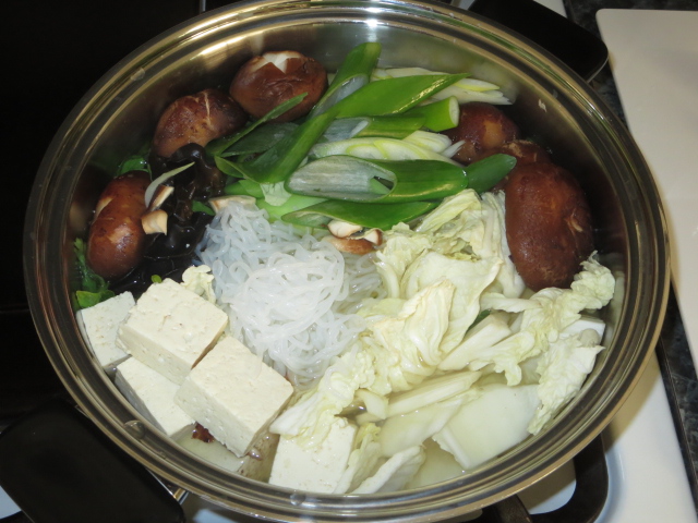このように、ガスレンジで作って、取り分けて食べることにしました。