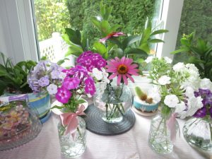 エヴァさん(ステさんの昔の同僚)が、庭のお花をカットして飾っていたり、うちに来るときに小さな花束にして持ってきてくれたりするのを見て、「そういうことができるのね!?」と。(笑)