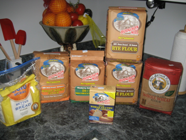 パンをふっくら焼くのにはグルテンが12~15%くらいが理想らしいんだけど、これらにどんだけ入ってるのかがイマイチわからない。とりあえず、ライ麦だけには、「ライ麦粉はグルテン量が少ないんで、グルテン多い粉と混ぜなよねっ」って書いてあるのを発見。(←ちっこい英語で書いてあるし、こういうのの読解も大変なんだよ。で、スーパー行くと時間かかんだ。)