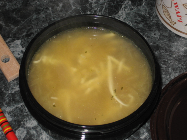 日本に行く前に、採れた玉ねぎをすべてアメ色に炒めつけて冷凍してありました。助かります。マズそうですが結構いい味出してます。ういているのはチーズです。