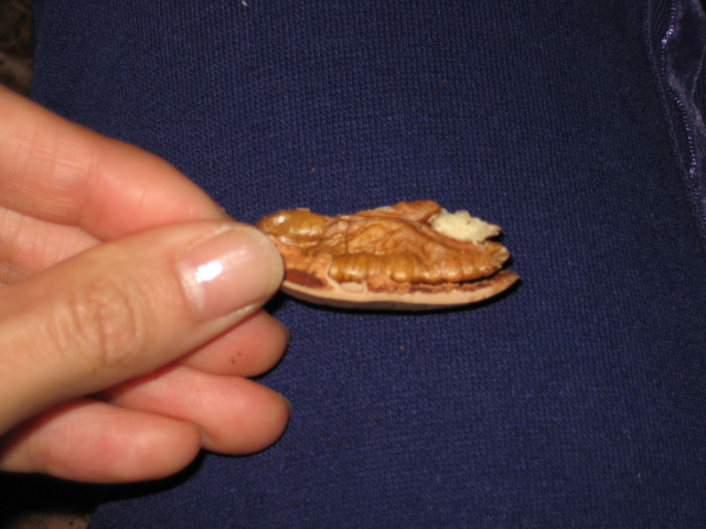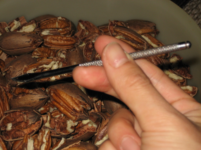 ここでは精神を統一して、ピーカンの声を聞きながら、できるだけ傷つけないよう、優しく、優しく・・・ほじります。同時にTVでも観てやろうなんて、タルんだ考えを起こして顔をあげたら、一貫の終わり。