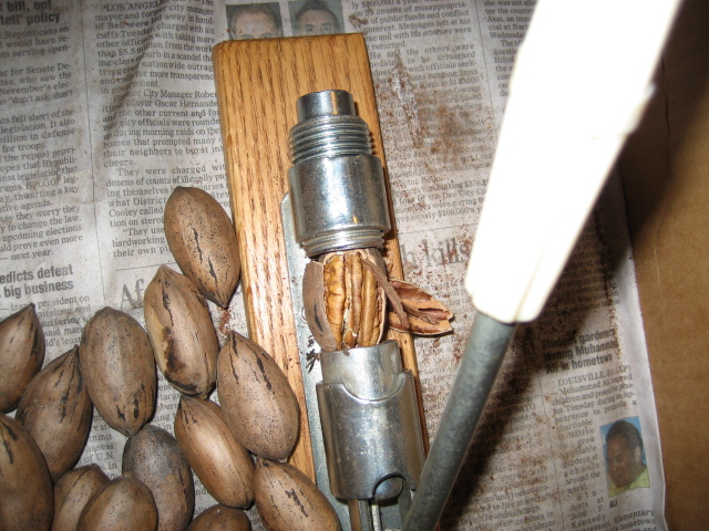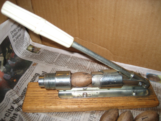 まず、このようなナッツクラッカーにて、テコの原理でもってピーカンの外殻を割ります。