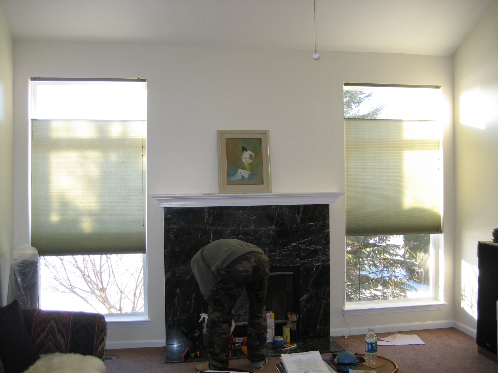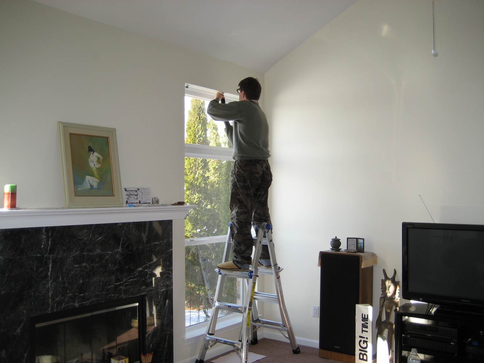 延ばし延ばしになっていた、リビングルームのブラインド。クリスマス前に注文し、正月明けに取りにゆき、ようやくコーキングもできたので(実は満足していないので手直し必要)いざ設置。