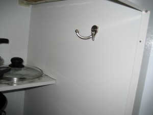 ここのパネルは1センチくらいだと思うので、、ネジが貫通して向こう側のレンジ台が傷つくおそれあり。パネルの反対を補強することもできない。そんなピンチのとき、アジアの人の脳裏に浮かぶのは・・・