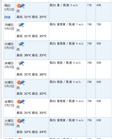 この天気予報によると最終日以外、晴れなんだけど。。。」
