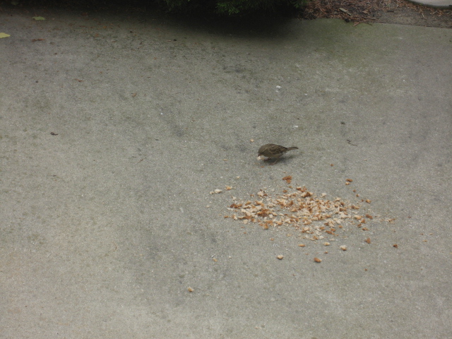 パンくず巻いて、小鳥おびきよせ大作戦。