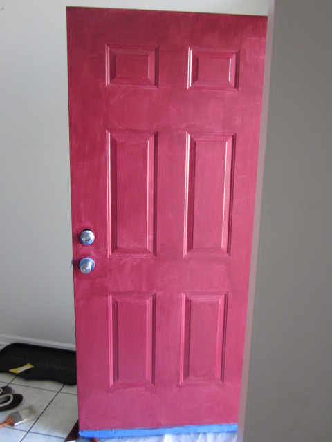 インディアナに住んでたときのドアが赤で気に入っていたので、ドアは赤にしようと思っていた。それにしてもいろんな種類の赤がありエイヤっと選んだ「ファイン・ワイン」。いざ、ペンキ缶を開けてみるとものすごくピンクっぽいブドウ色。ヒヤヒヤしながら重ね塗り2回。