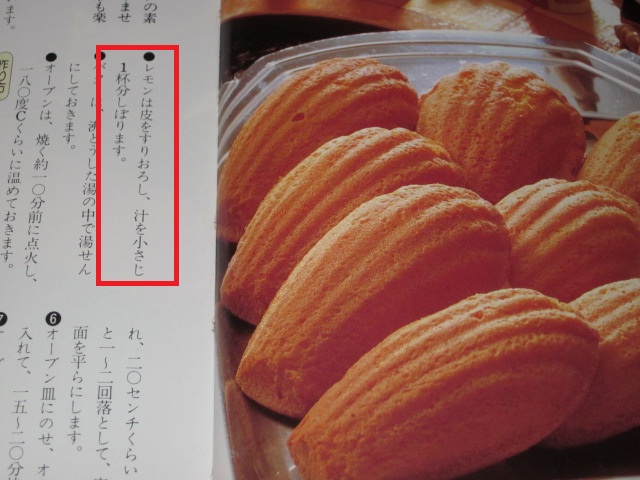 『レモン1個ってやけに多いなぁ』とは思ったのよ。チーズケーキより多いんだもん。そんなにレモン風味じゃないよね?マドレーヌって、と思いつつ、早く食べたい一心で、下準備の欄を読まずに作ってしまいました。