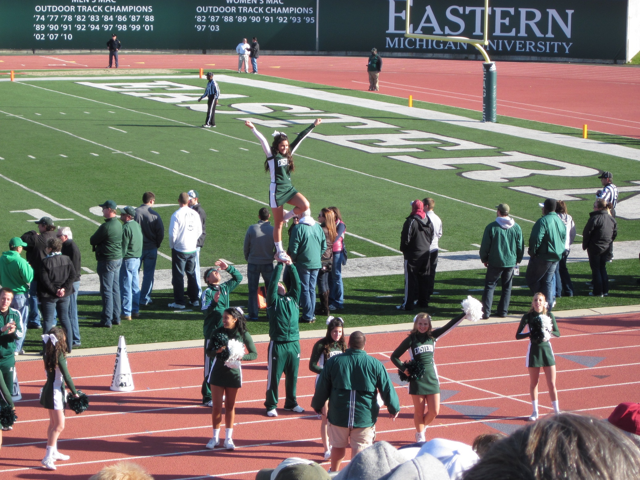 チアリーダーの他に「ダンスチーム」というのもあって、そちらはもう少しヒップを利かせたセクシームーブで踊っており、時代を反映してか人数も多かった。