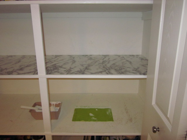 この家、あらゆる戸棚や引き出しの中に、「うそマーブル模様」のシートが貼ってあります。