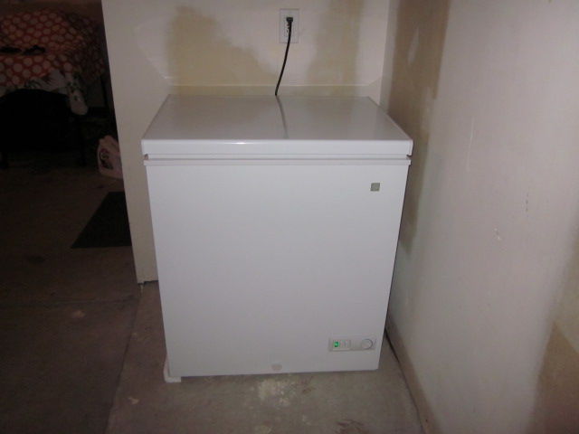 こんなスタイルの冷凍庫をチェスト・フリーザーといいます。家の中は狭いのでガレージに置きます。