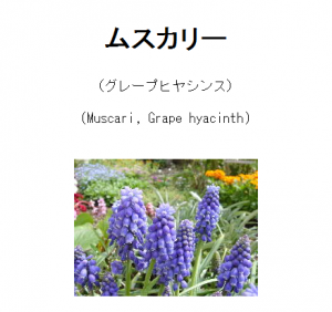 調べてみました。ムスカリー。 覚えにくい名前ですね。