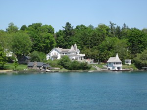 最初の頃は、「アメリカってほんと家の作りがちゃっちい。」と思っていたけど、それは間違いであった。単に自分が「ちゃっちい家」の辺をホームベースにしていたのにすぎない。そして古い家っていやだなぁと思っていたけど、古くにお金持ちが建てた家というのは実に素晴らしい。そして湖畔に住むということに何の価値も見出していなかったけれど、こういうの見ると「毎朝こんな景色で目覚めるのいいなぁー。」と思う。水際に住むのが怖いのは、日本の台風や津波のせいでしょうね。(笑)