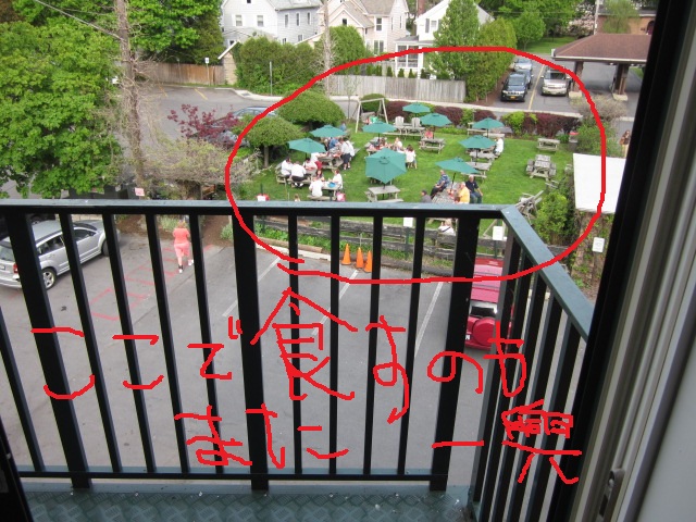 屋外にもピクニックエリア、と称してテーブルがあるよ。土日の食事時は結構にぎわっている。