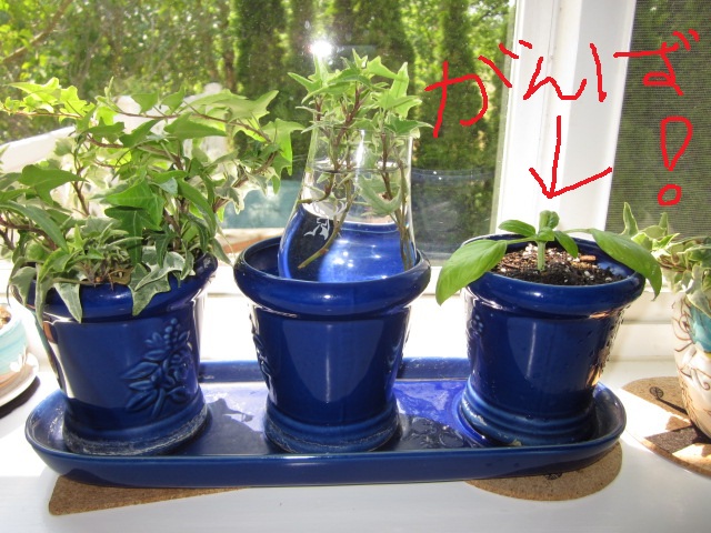 6月も後半にさしかかろうという時にこのサイズでは、茂ったころには秋になっているかもミシガン。出窓でどこまで育つか実験も兼ねて。