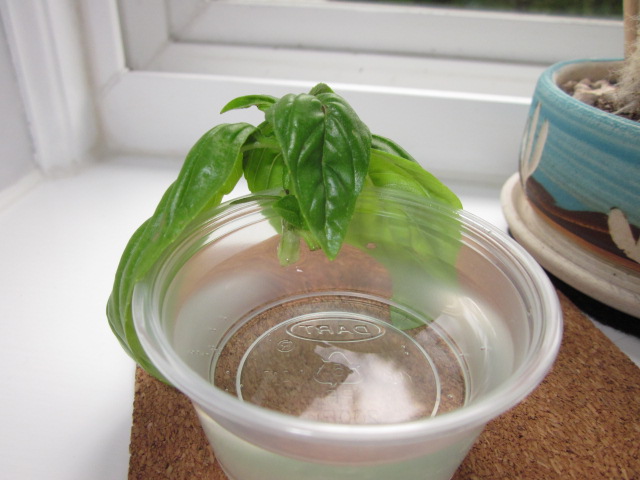 枝数を増やすために摘芯した部分。水につけておいたら、けっこうボワッと根がでました♪ホントに強いんだね、バジルちゃん。