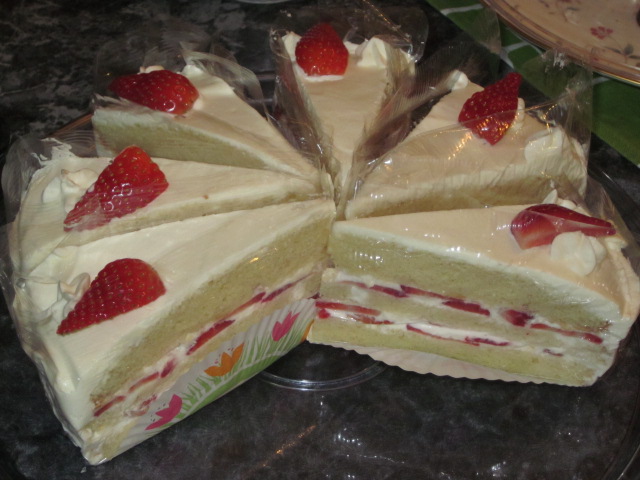 実はバニラエッセンス入れすぎたり、生クリームが若干足りなかったり色々失敗だったんだけど、個別包装(?)するとちょっとごまかせる。(笑)味は一応ショートケーキなのでまぁいいかという感じ。^^