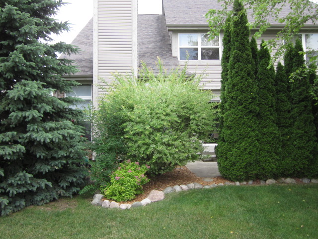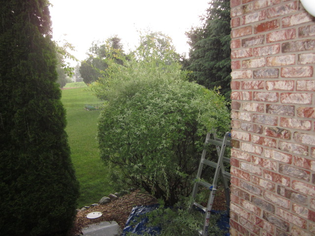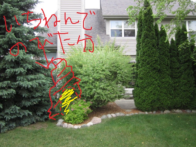 だいたいこういうの、電ノコ使ってるお宅が多いけど、すなポンは切れない剪定バサミでチョキチョキやってるんだよね。時間がかかるわりにあまり効果がないこをとよくやっています。