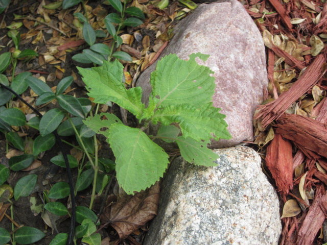 こぼれ種から自力で芽を出したシソ達は、ようやく大きくなってきた。