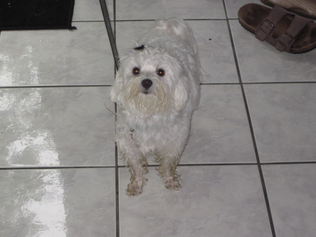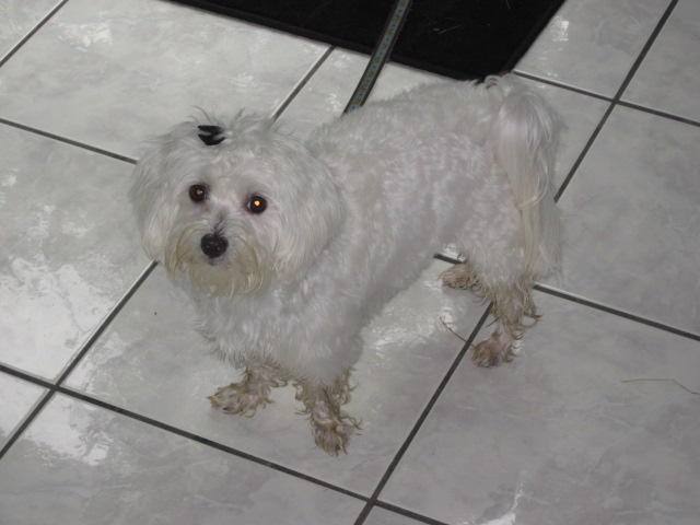 朝露で芝生が濡れているとこんなになる。→外に出すたび拭かなきゃならん。