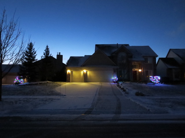 もうちょっと暗くなるとガレージの電灯があと一個点くんですけどね。