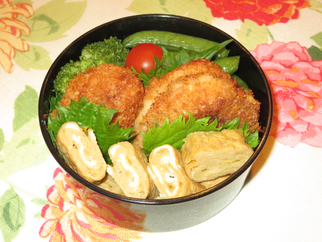 卵焼き、すき間とかあるからダメだしされそうだけど。私の弁当は、がんばってもこれが精一杯な感じです。