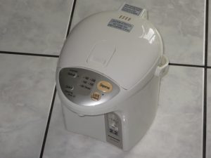 電気ポットも壊れたの。