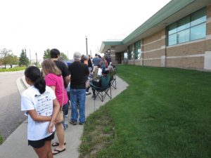 と思ったら、9:30に図書館からスタッフが出てきて、引換券を配って行った。