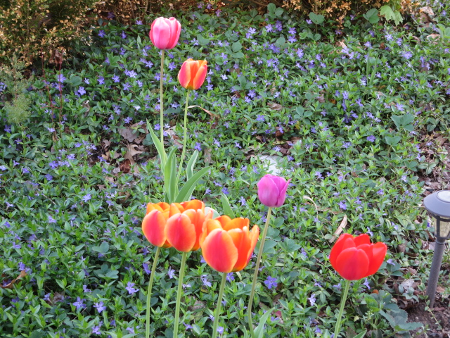 毎年春になるとちゃんと咲いて、すごいなと思います。 花の色がちょっとずつ違うのはどういう仕組みなんだろう。 球根が違うのかな。
