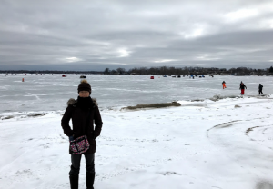 この日、近所の大きな湖は、アイスフィッシング日和。