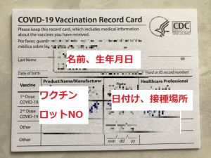 一部、シールにタイプされたものが貼られたり、超適当です。これ持ってると何かいいことあるのかというと、現状では、ないです。「ワクチン・パスポート」というシステムを構築している国、どこだっけ?イスラエル?(違う?) がありますが、